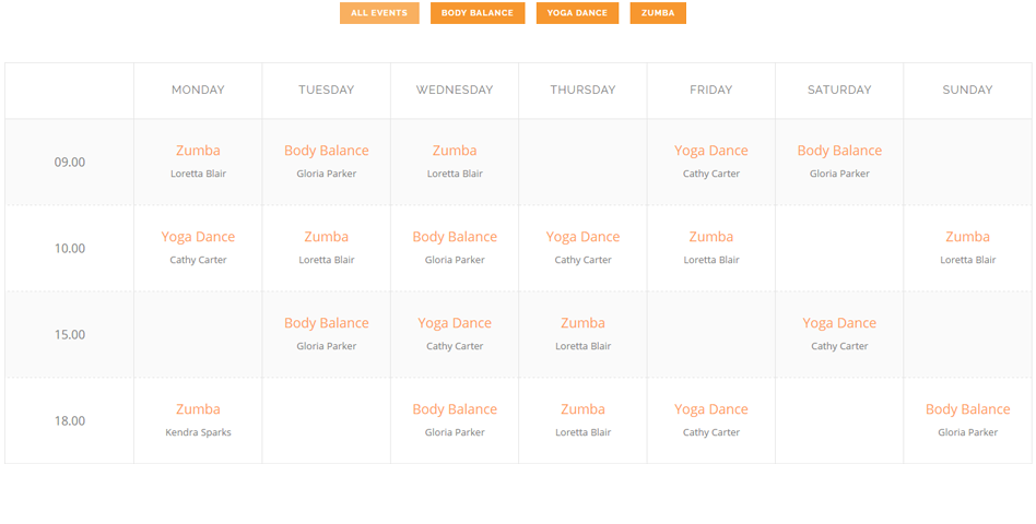Anahata comes with the premium Timetable Responsive Schedule For WordPress plugin for free, allowing you not only to create beautiful weekly timetables with an optional filter functionality as well as single event pages proving a detailed description of each of your classes, but also saving you $22.